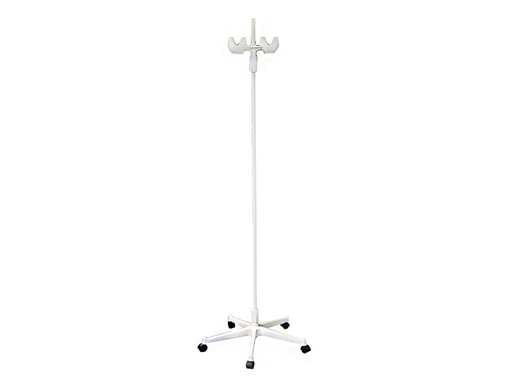 - Стойка выполнена из стальной трубы Ø16*1,5 мм, Ø25*1,5 мм и окрашена порошковой полиэфирной краской. Флаконодержатель выполнен из пластика белого цвета. Лучи основания выполнены из полиамида. Основание сборно-разборное
