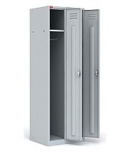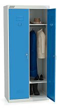 Двухсекционный металлический гардеробный шкаф предназначен для хранения одежды.