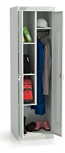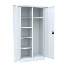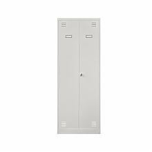 Шкаф металлический разборный двухсекционный, предназначен для хранения сменной одежды и инвентаря. В стандартную комплектацию каждого шкафа входят три полки , перекладина для вешалки и крючки для одежды. Шкаф оснащен врезным замком.