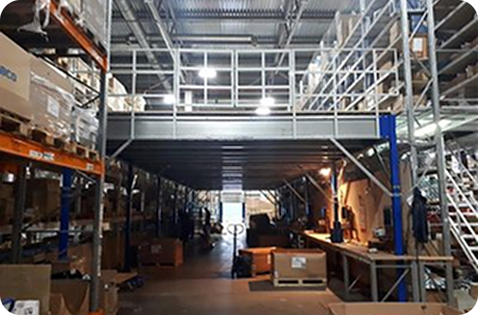 Такая система позволяет эффективно использовать высоту здания и создать новые зоны хранения, места для оборудования, комплектации или даже офисные пространства. Итог — увеличение полезной площади склада без капитального строительства.