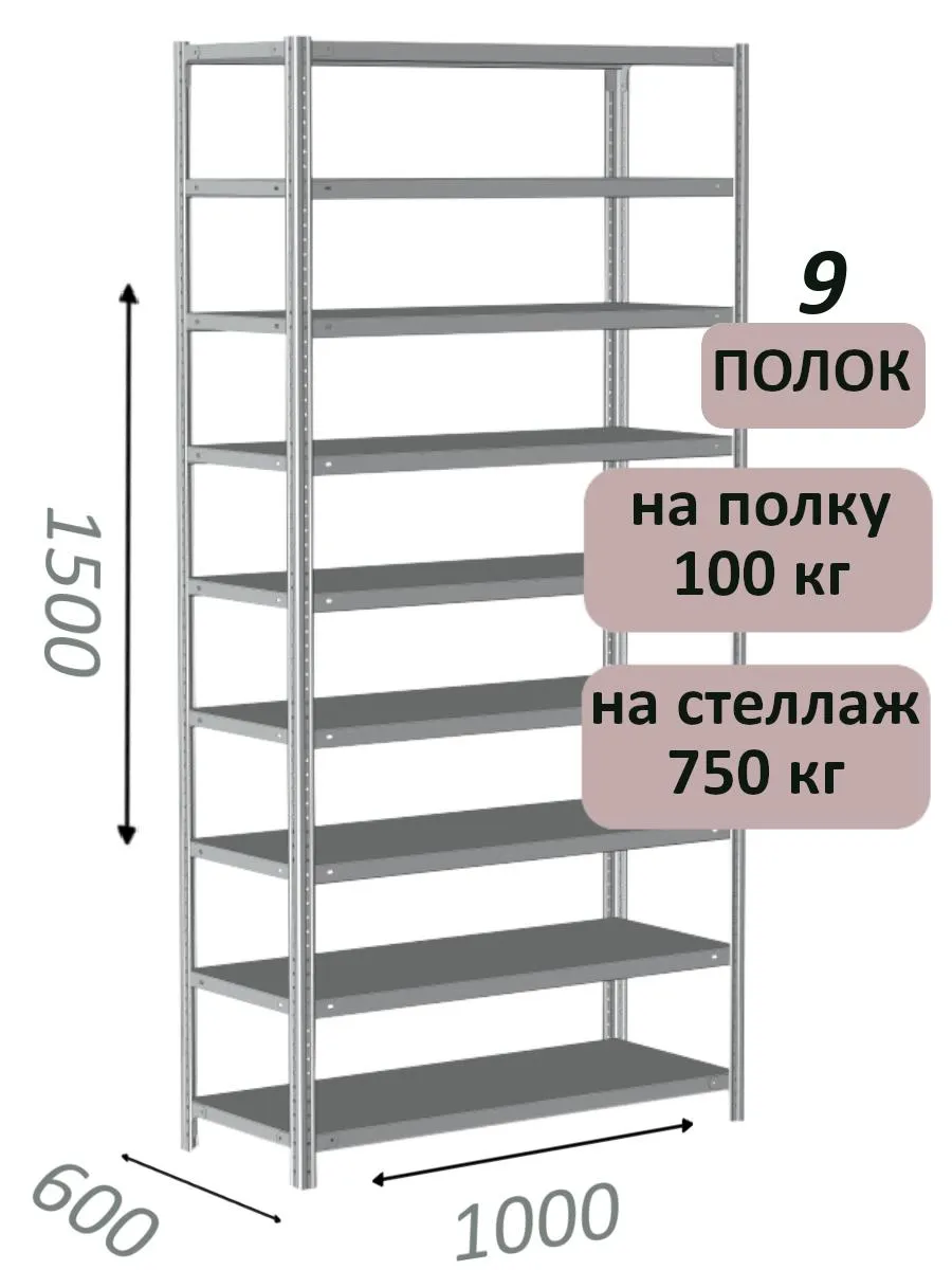 Чтобы уточнить цену и заказать доставку Стеллаж металлический полочный МС 1500х1000х600, 9 полок, 100 кг на полку, светло-серый в Белгороде, звоните по телефону или закажите обратный звонок.