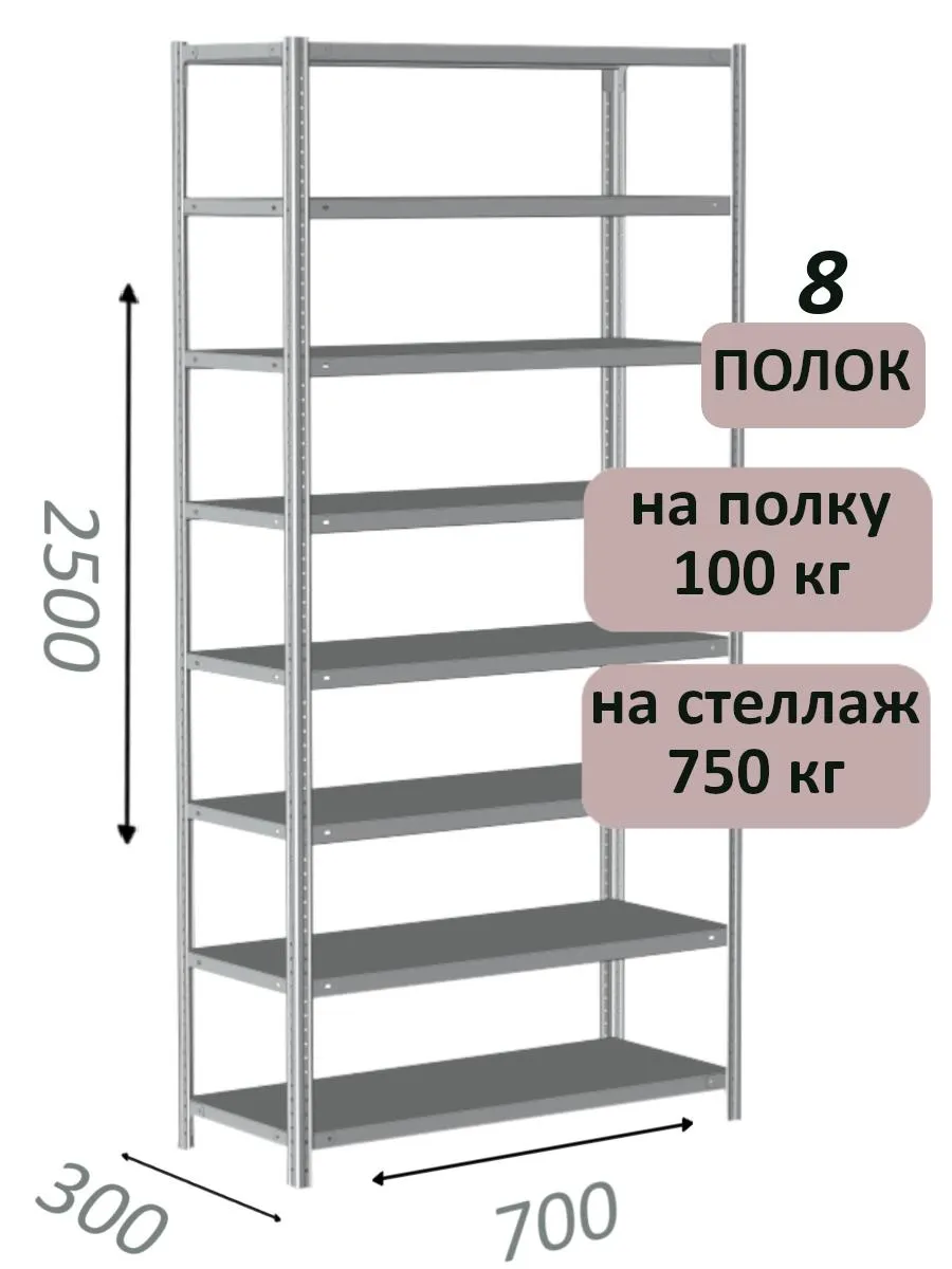 Чтобы уточнить цену и заказать доставку Стеллаж металлический полочный МС 2500х700х300, 8 полок, 100 кг на полку, светло-серый в Белгороде, звоните по телефону или закажите обратный звонок.
