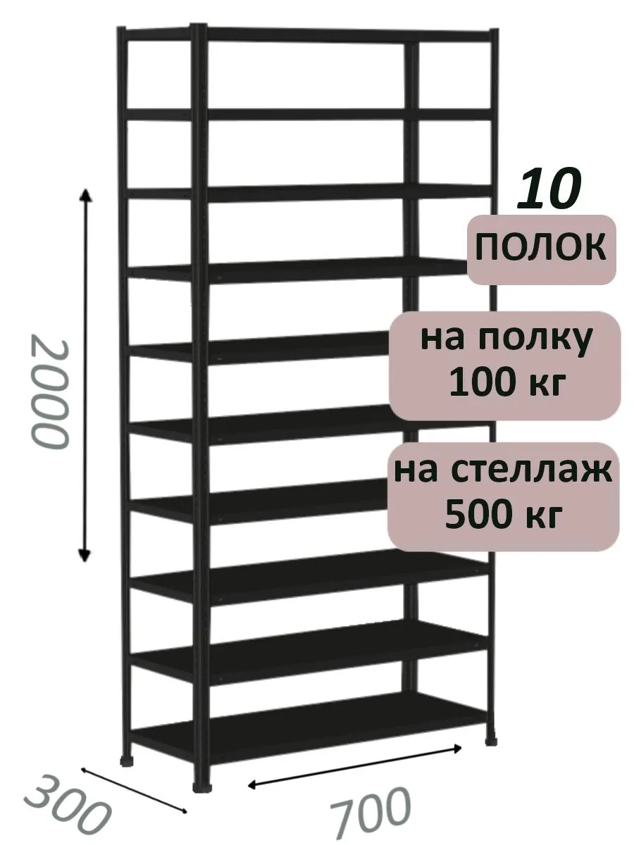 Стеллаж MS Standart 200х70х30, 10 полок, чёрный
