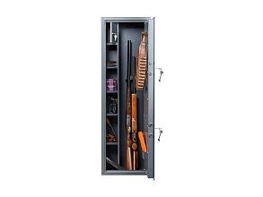 Шкаф односекционный, на 3 ствола оснащен отделением под патроны. Ложементы — металлические держатели с резиновыми роликами. Максимальная высота устанавливаемого оружия — 1350 мм. Один замок ЗАО «Про-Сам» г. Рязань или аналогичный замки другого производителя. Второй замок кодовый электронный.