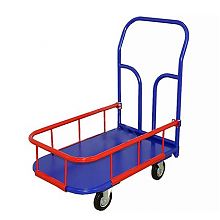 Тележка платформенная с бортиком ТПБ - Тележка платформенная металлическая с быстро устанавливаемым бортом серии ТПБ предназначена для перевозки мелкогабаритных и среднегабаритных товаров и грузов. Борт служит для надежной фиксации груза, предотвращает скатывание и падение груза с платформы тележки.