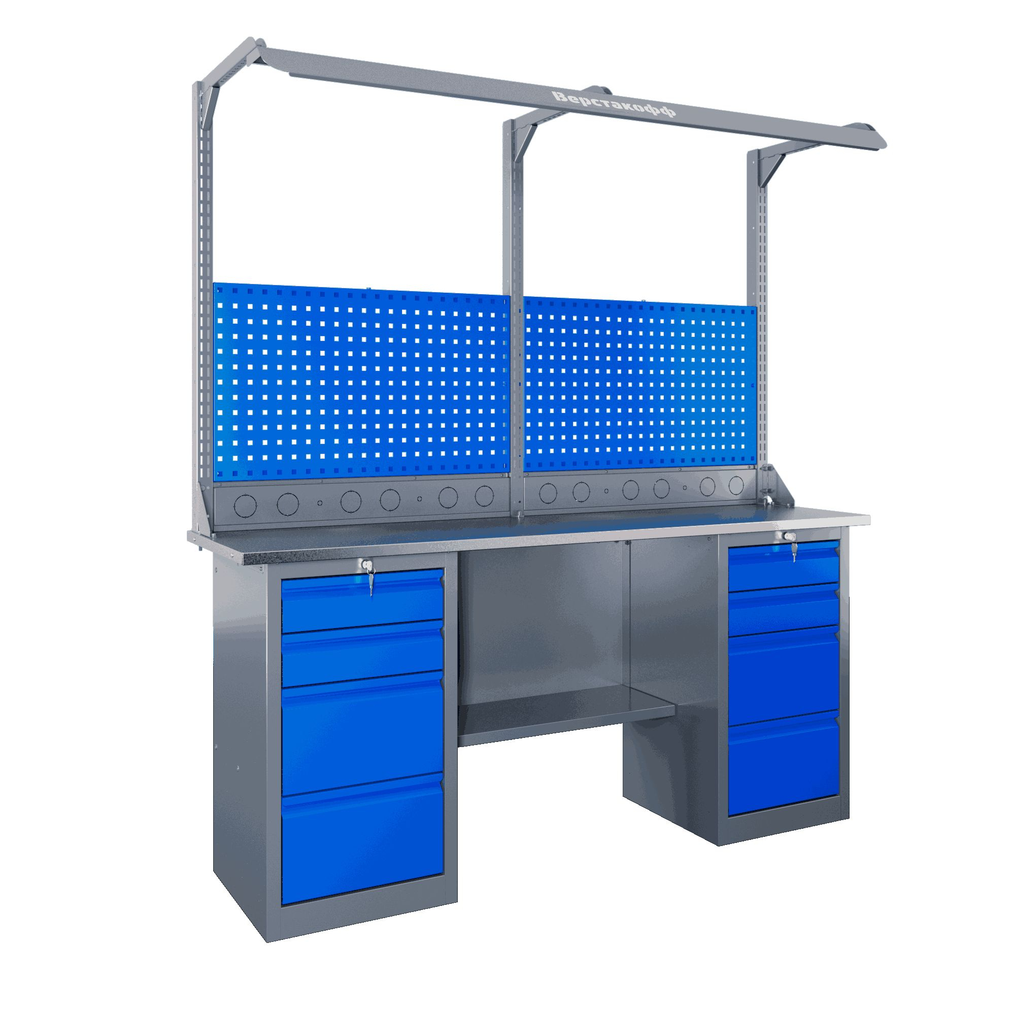 Самые компактные верстаки с глубиной столешницы 500 мм. Благодаря небольшой глубине, такие верстаки легко размещаются в ограниченных пространствах, например, в гаражах, мастерских и тд. Несмотря на компактные размеры, верстаки могут быть оснащены полками, ящиками и держателями для инструментов, что помогает поддерживать порядок и быстро находить нужные предметы.