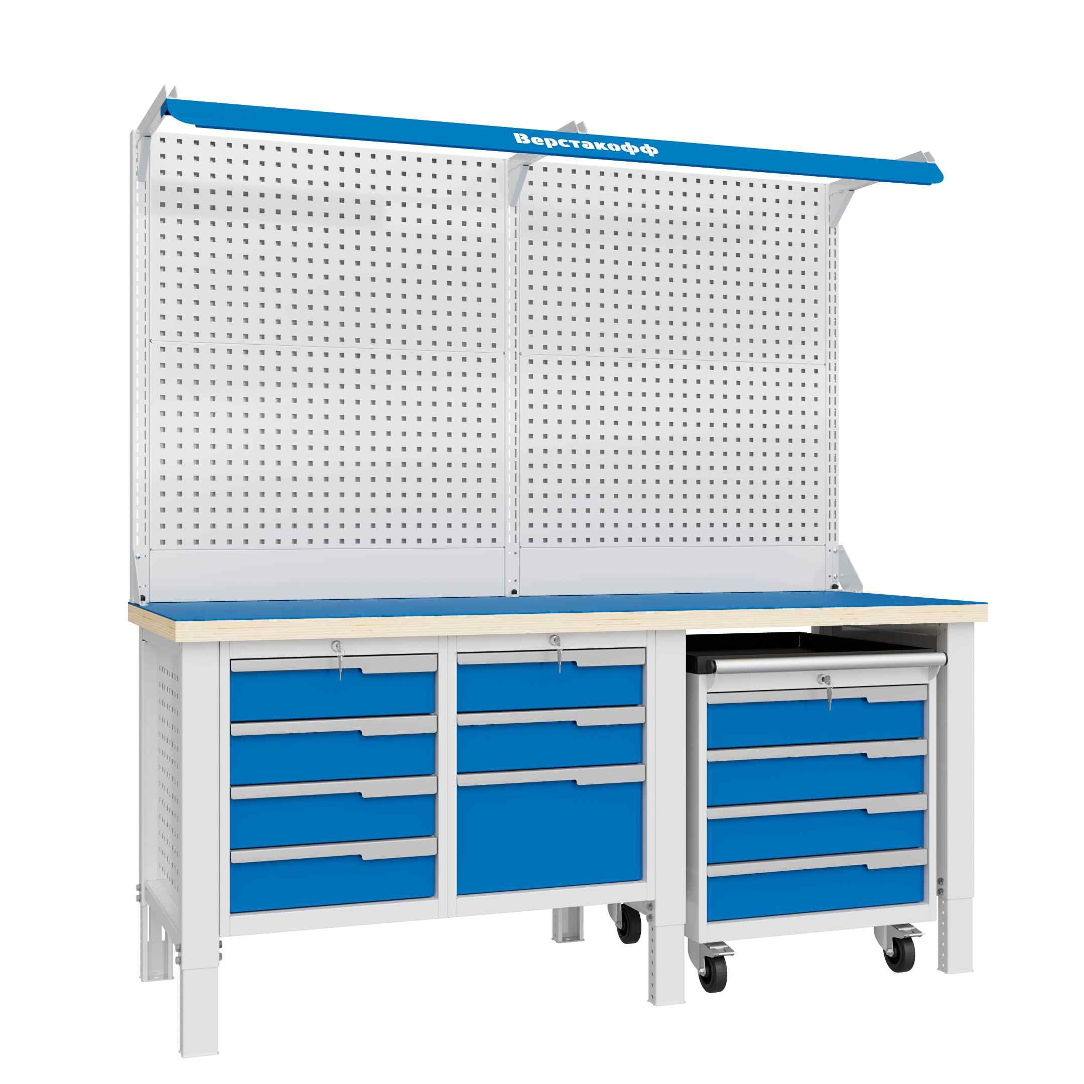 Отдельно можно приобрести навесные элементы Верстакофф с квадратной перфорацией