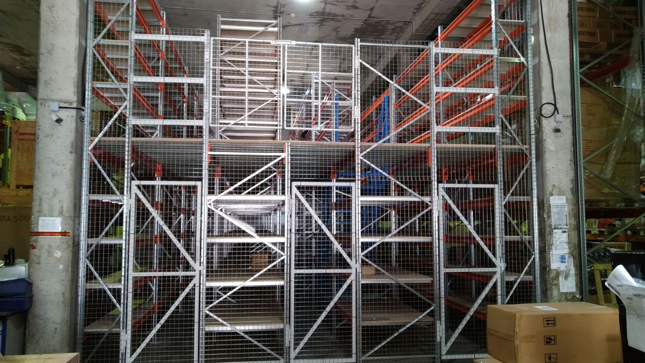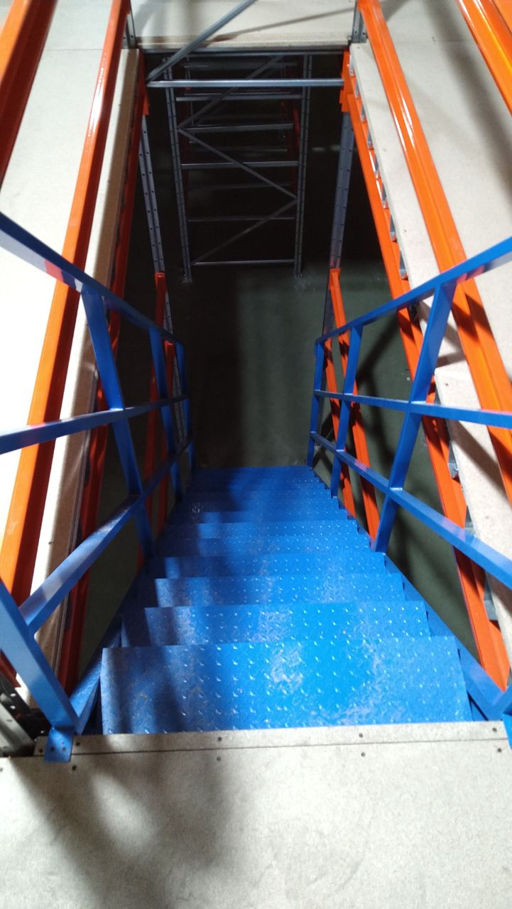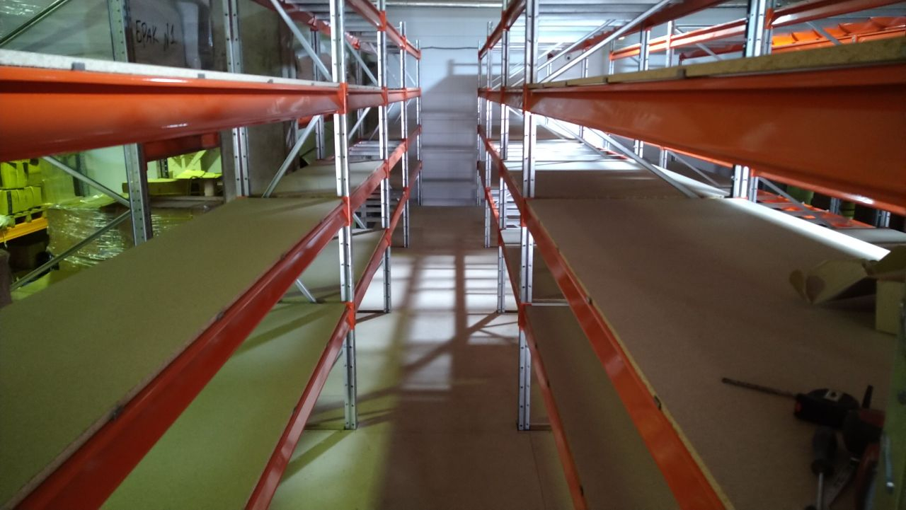 Мезонин для полочного хранения запчастей, настил ДСП.
